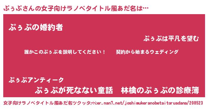 | 胡散臭い通販商品みたいなあだ名 | 『億万長者になれる霊験あらたかなお札…その名も「ぷぅぷ」』 |