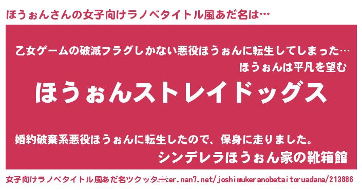 | 男性向けラノベタイトル風あだ名 | 『Re:ほうぉんから始める異世界生活』 |