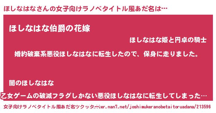 | 男性向けラノベタイトル風あだ名 | 『転生したらほしなはなだった件』 |