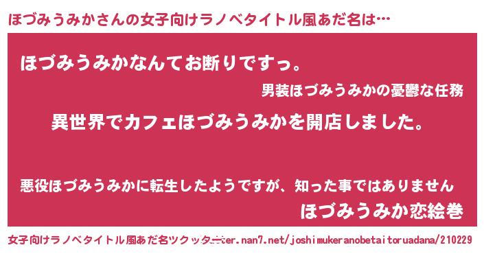 | 男性向けラノベタイトル風あだ名 | 『誰もが恐れるあのほづみうみかが、ぼくの専属メイドになるようです。』 |