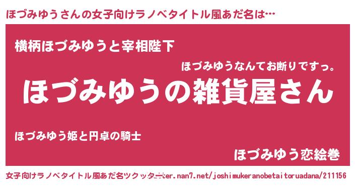 | ファンタジー風あだ名 | 『エターナルホヅミユウー』『ゼホヅトゥ』 |