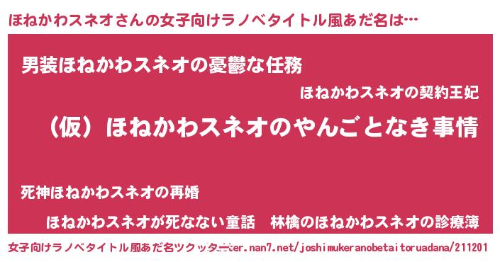 | 男性向けラノベタイトル風あだ名 | 『ほねかわスネオの憂鬱』 |