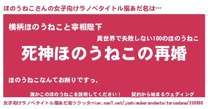 | 伝説のあだ名 | 『救世主となる占い師ほのうねこ』 |