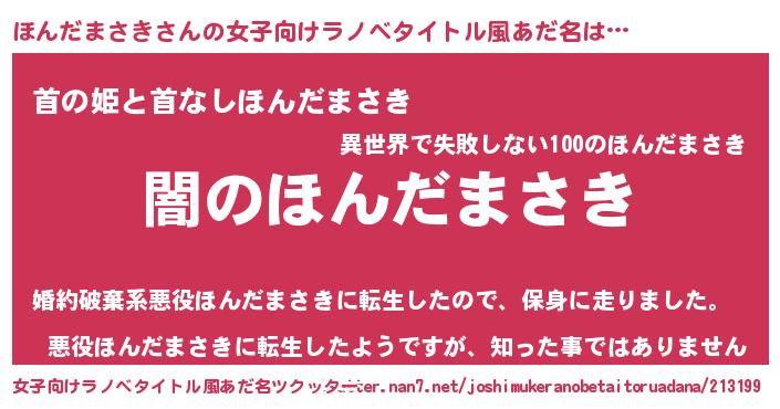 | 意味不明あだ名 | 『自称ほんだまさき』 |