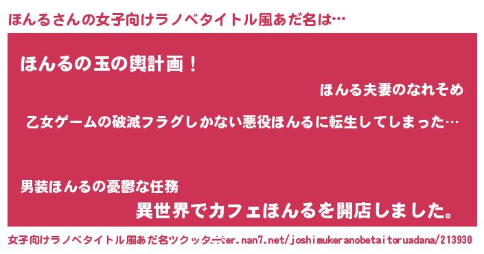 | 男性向けラノベタイトル風あだ名 | 『この素晴らしい世界にほんるを!』 |