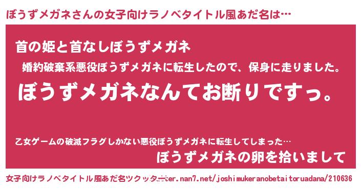 | 男性向けラノベタイトル風あだ名 | 『魔法科高校のぼうずメガネ』 |