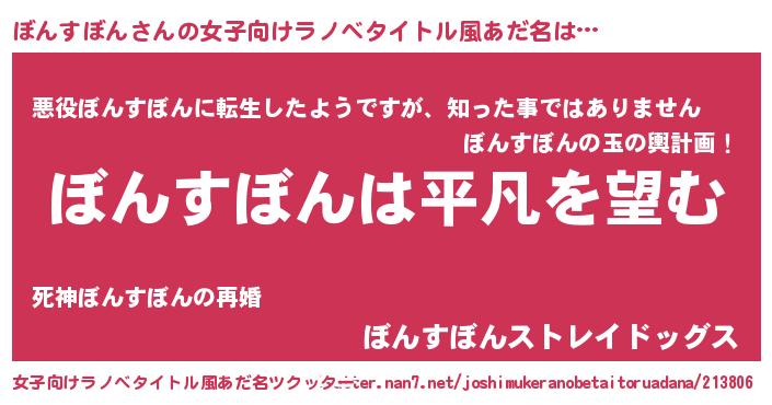 | 胡散臭い通販商品みたいなあだ名 | 『信頼と実績のサプリメント…その名も「ぼんすぼん」』 |