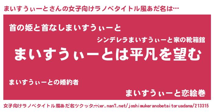 | 意味不明あだ名 | 『とにかく怪しいまいすうぃーと』 |