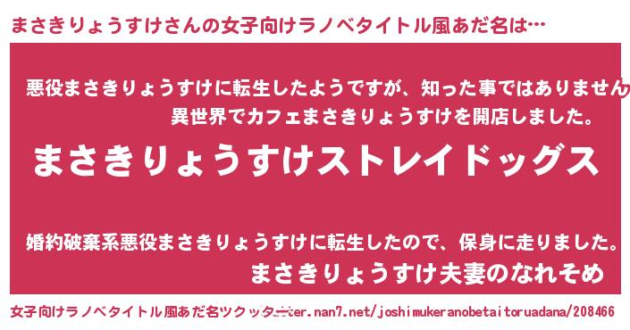 | 男性向けラノベタイトル風あだ名 | 『Re:まさきりょうすけから始める異世界生活』 |