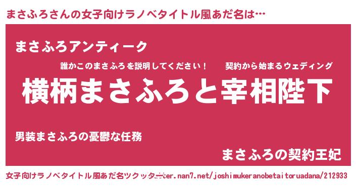 | 意味不明あだ名 | 『自称まさふろ』『永久保存まさふろ』 |