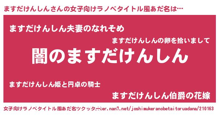 | 男性向けラノベタイトル風あだ名 | 『Re:ますだけんしんから始める異世界生活』 |