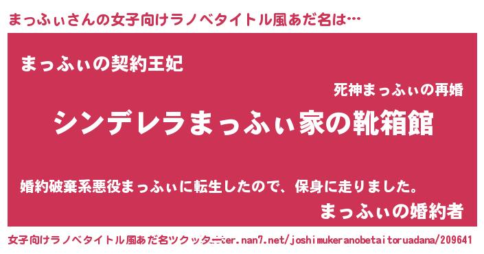 | 男性向けラノベタイトル風あだ名 | 『緋弾のマッフィ』『マッフィスレイヤー』 |