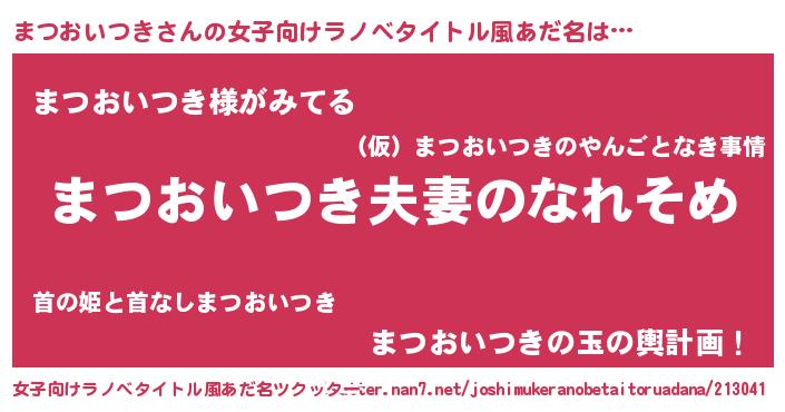 | 胡散臭い通販商品みたいなあだ名 | 『100人中100人が認めたイリジウム磁石…その名も「まつおいつき」』 |