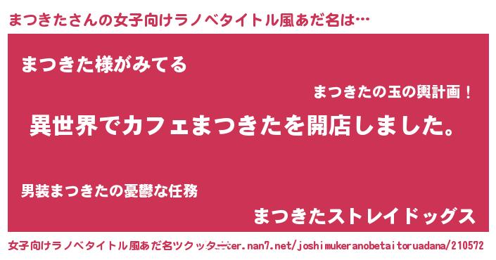 | 胡散臭い通販商品みたいなあだ名 | 『前代未聞の健康食品…その名も「まつきた」』 |