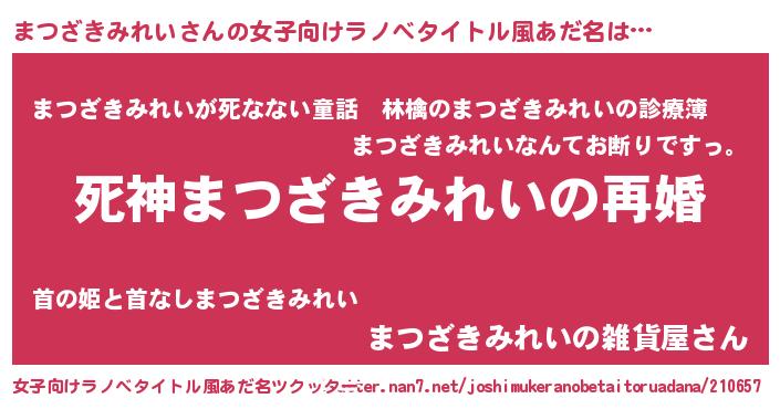 | 胡散臭い通販商品みたいなあだ名 | 『モンドセレクションを受賞した隕石のかけら…その名も「まつざきみれい」』 |