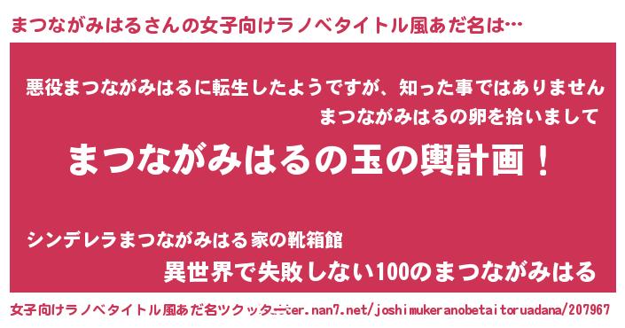| 男性向けラノベタイトル風あだ名 | 『転生したらまつながみはるだった件』 |