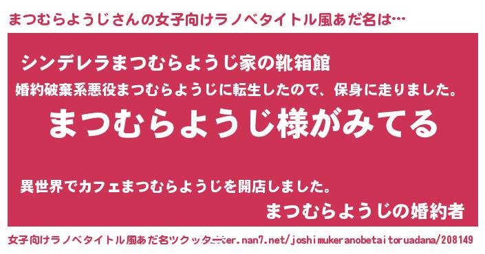 | 男性向けラノベタイトル風あだ名 | 『まつむらようじの嫁は女の子じゃないと思った?』 |