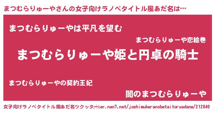 | 男性向けラノベタイトル風あだ名 | 『マツムラリューヤアートオンライン』 |