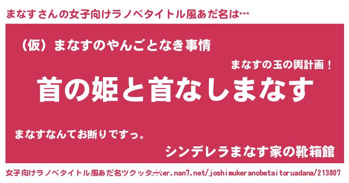 | 男性向けラノベタイトル風あだ名 | 『はたらくまなすさま!』『まなすの憂鬱』 |