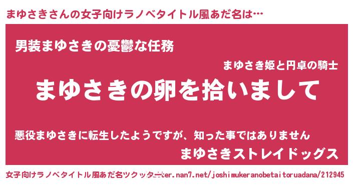 | 男性向けラノベタイトル風あだ名 | 『まゆさきの嫁は女の子じゃないと思った?』 |