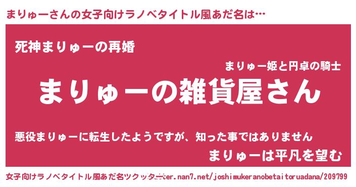 | 男性向けラノベタイトル風あだ名 | 『やはりまりゅーの青春ラブコメはまちがっている 』 |