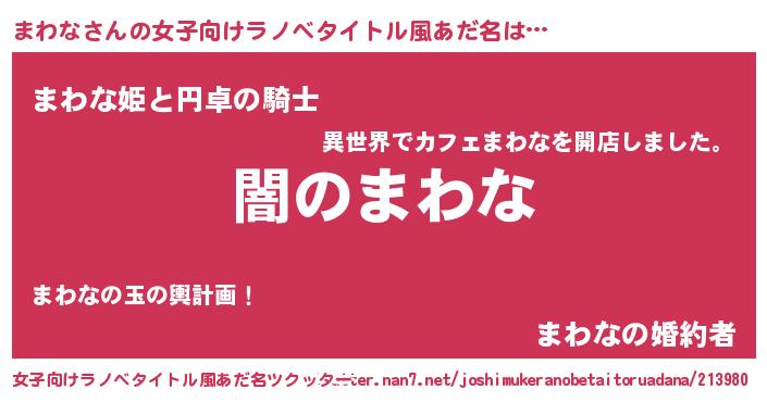 | 男性向けラノベタイトル風あだ名 | 『Re:まわなから始める異世界生活』 |