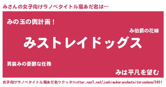 | 男性向けラノベタイトル風あだ名 | 『Re:みから始める異世界生活』 |