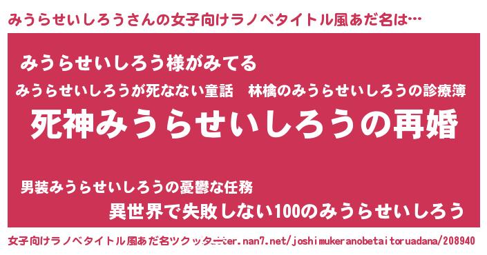 | 男性向けラノベタイトル風あだ名 | 『ノーゲーム・ノーミウラセイシロウ』 |