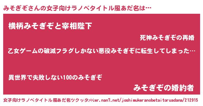 | 意味不明あだ名 | 『住所不定無職みそぎぞ(98歳)』 |