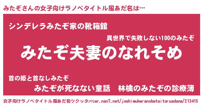| ヘコむあだ名 | 『みたぞ(爆)』『みたぷりん』 |