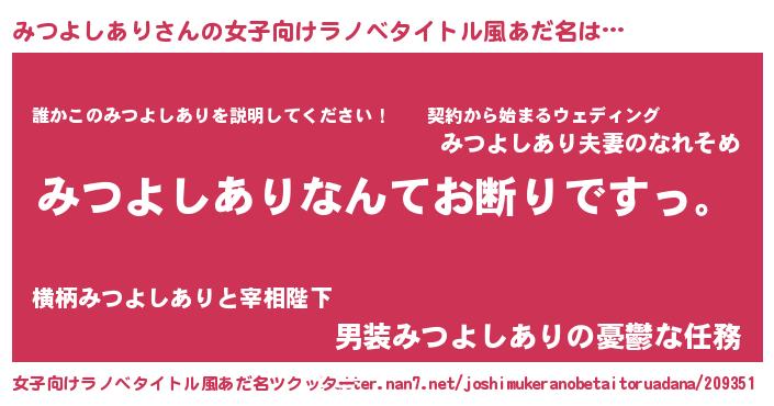 | 意味不明あだ名 | 『自称みつよしあり』 |