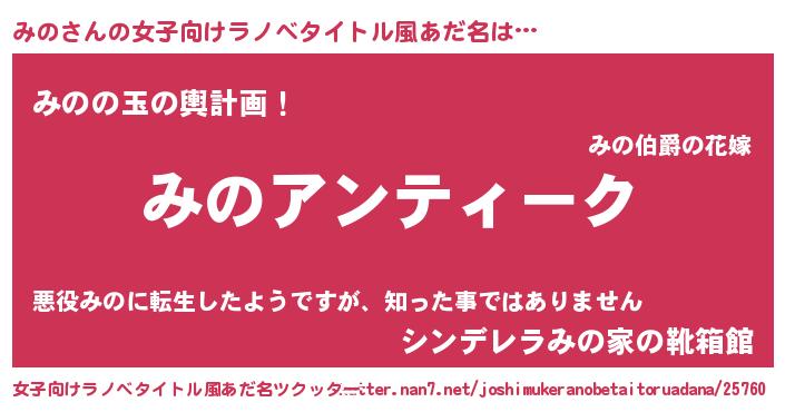 | 意味不明あだ名 | 『自称みの』『ニラ科みの属』 |