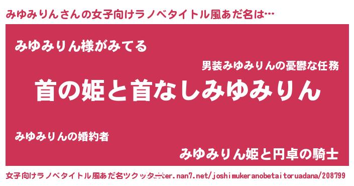 | 胡散臭い通販商品みたいなあだ名 | 『信頼と実績のサプリメント…その名も「みゆみりん」』 |