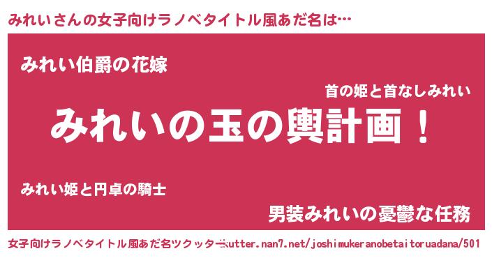 | 男性向けラノベタイトル風あだ名 | 『転生したらみれいだった件』 |