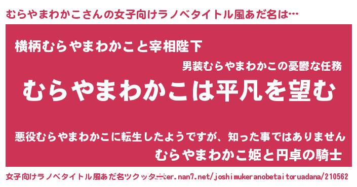| 男性向けラノベタイトル風あだ名 | 『ダンジョンにむらやまわかこを求めるのは間違っているだろうか』 |