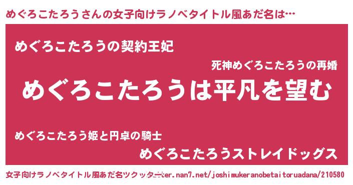 | 男性向けラノベタイトル風あだ名 | 『ダンジョンにめぐろこたろうを求めるのは間違っているだろうか』 |