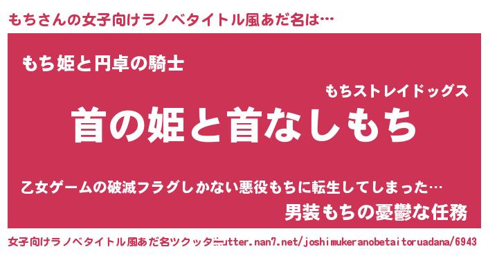 | 男性向けラノベタイトル風あだ名 | 『はたらくもちさま!』『魔弾の王ともち』 |
