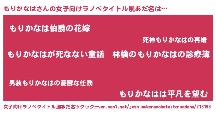 | 意味不明あだ名 | 『住所不定無職もりかなは(89歳)』 |