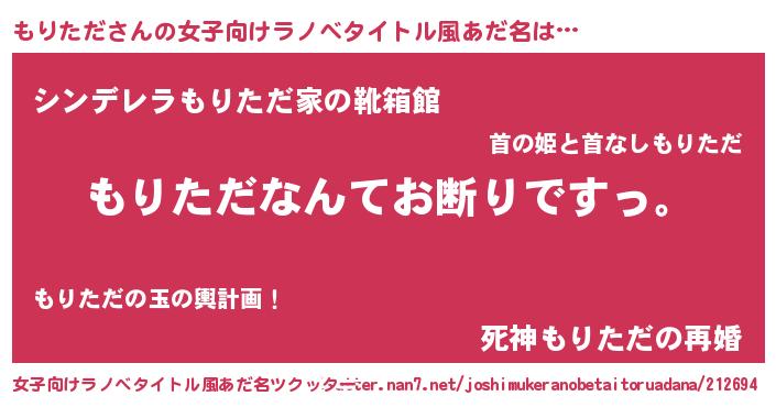 | 男性向けラノベタイトル風あだ名 | 『魔法科高校のもりただ』 |