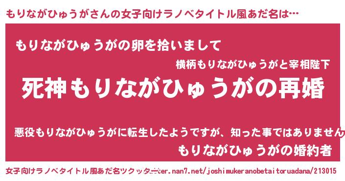 | 肩書あだ名 | 『もりながひゅうが助教授』 |