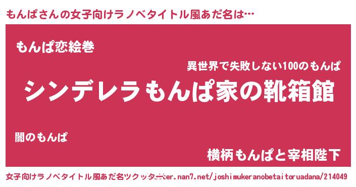 | ヘコむあだ名 | 『もんぱ(笑)』『もんぷりん』『豆乳』 |