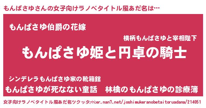 | ファンタジー風あだ名 | 『モンフェル』『エターナルモンパサユー』 |