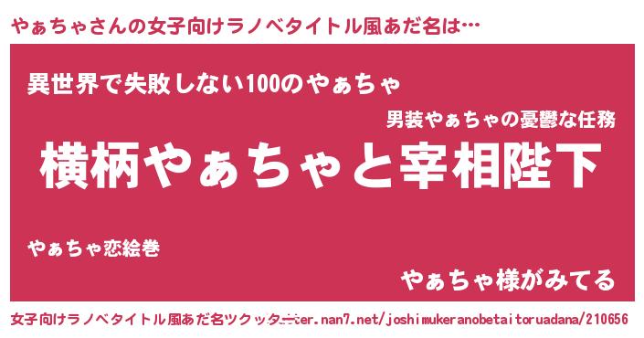 | 胡散臭い通販商品みたいなあだ名 | 『前代未聞の健康食品…その名も「やぁちゃ」』 |