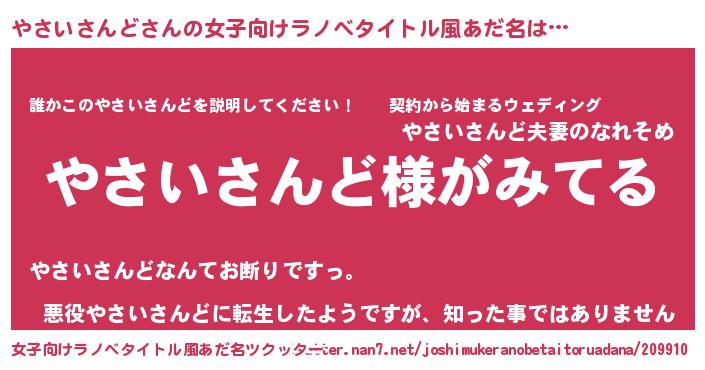 | 胡散臭い通販商品みたいなあだ名 | 『全米が絶賛したサプリメント…その名も「やさいさんど」』 |