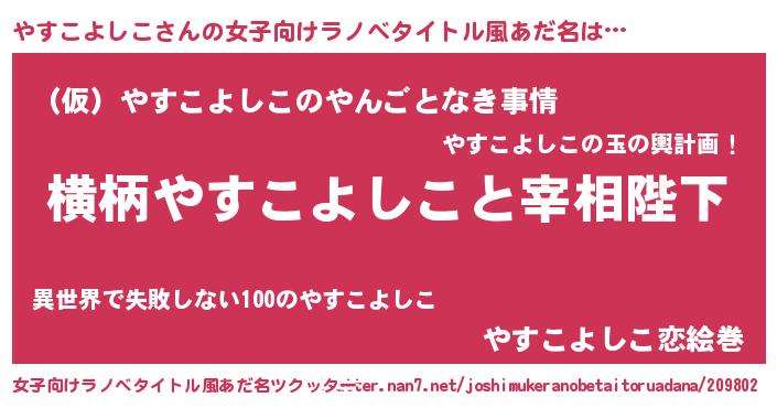 | 男性向けラノベタイトル風あだ名 | 『やすこよしこに滅ぼされるだけの簡単なお仕事です』 |