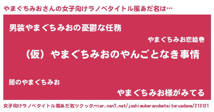 | 男性向けラノベタイトル風あだ名 | 『やまぐちみおの憂鬱』 |