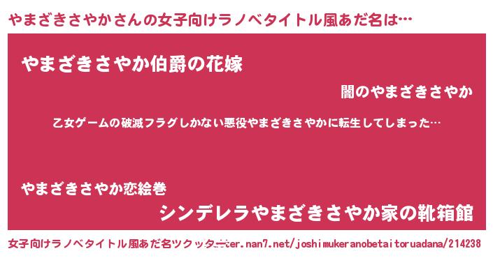 | 男性向けラノベタイトル風あだ名 | 『この素晴らしい世界にやまざきさやかを!』 |