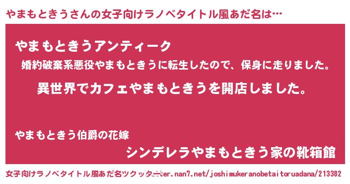 | 男性向けラノベタイトル風あだ名 | 『誰もが恐れるあのやまもときうが、ぼくの専属メイドになるようです。』 |