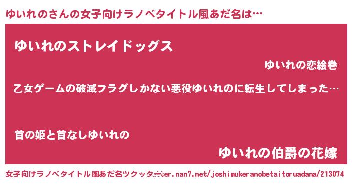 | ヒーロー風カッコイイあだ名 | 『仮面ユイダー』『究極戦士ユイレノ』 |