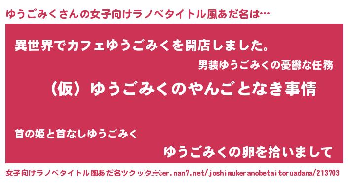 | 男性向けラノベタイトル風あだ名 | 『ゆうごみくの憂鬱』 |